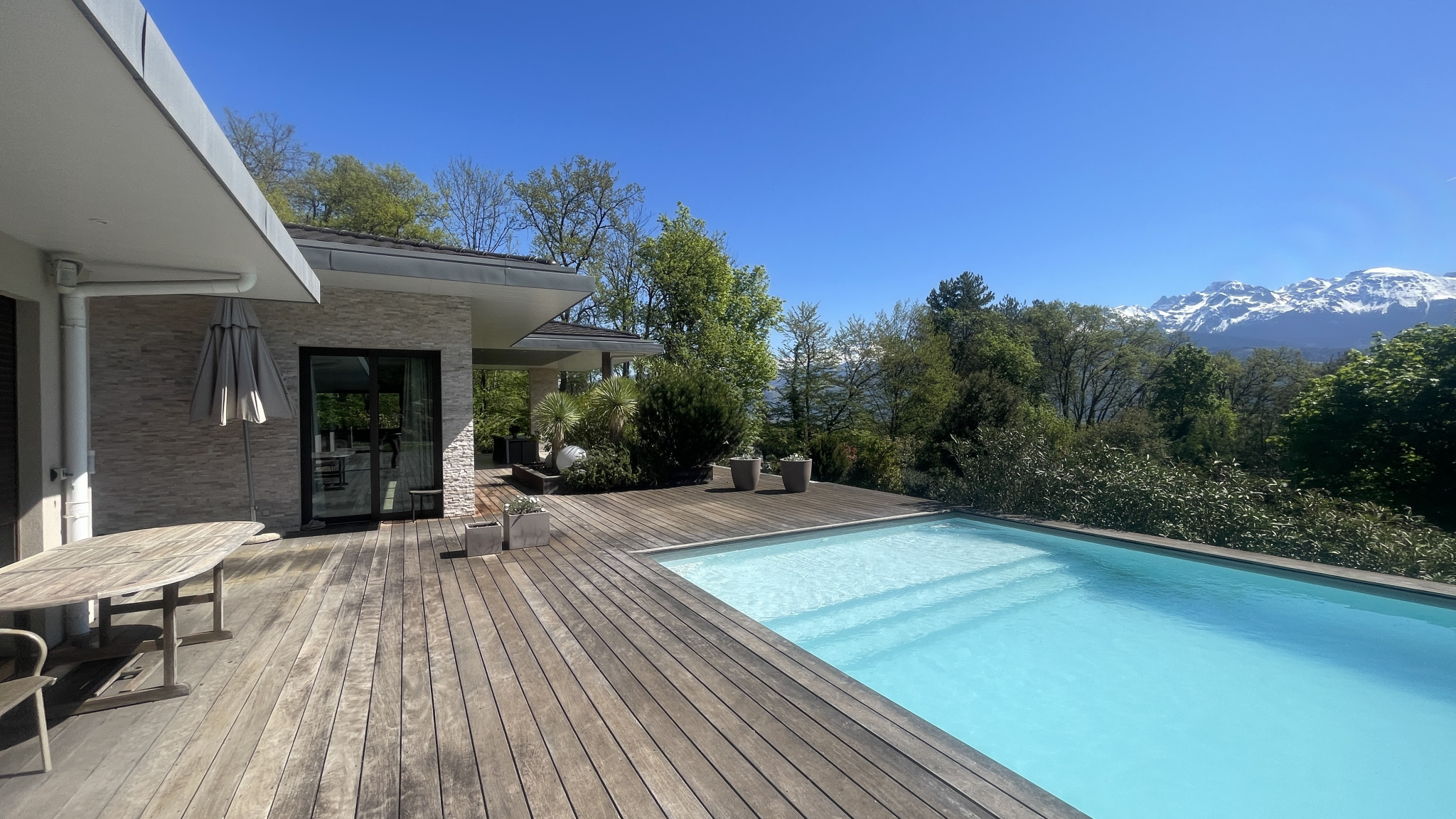 L'immobilière ROSIER vous propose une villa ultra contemporaine de plus de 300 m2 hors dépendances sur les hauteurs de Meylan. Lovée dans la nature, à l'abri du bruit et des regards, la villa contemple le massif de Belledonne. La construction de 2012, solide a été conçue avec intelligence et astuces. Les lignes sont épurées et élégantes. Les matériaux sont de qualité exceptionnelle. L’espace habitation est de plain-pied et toutes les pièces principales donnent sur une magnifique terrasse d’environ 300 m2 qui coure le long de la villa. La grande piscine de 14 mètres de long vous y attend.