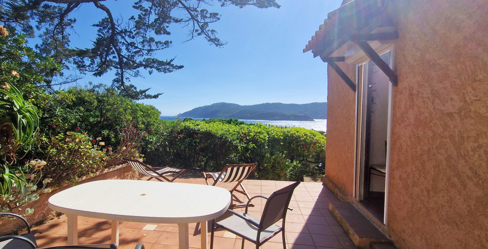 La vue mer est magique, faisant face à l'Ile de Port-Cros, parc national terrestre et marin, situé à une demi-heure de kayak.