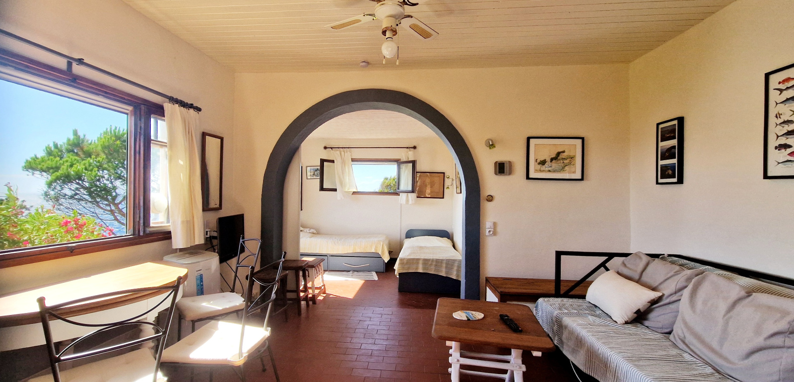 La maison se compose d'une grande pièce, avec un coin chambre et un coin salon, pouvant être séparés par une cloison coulissante.