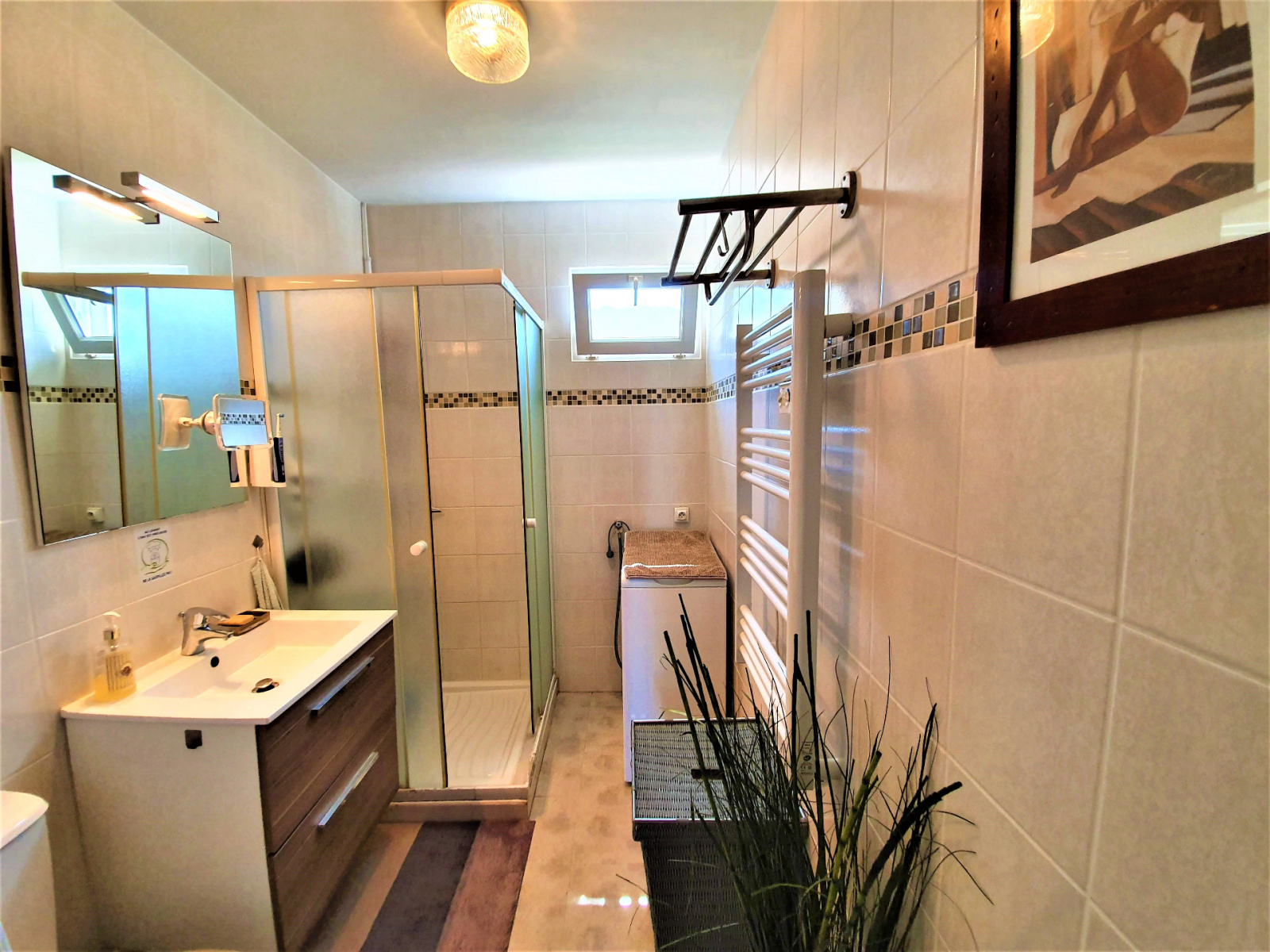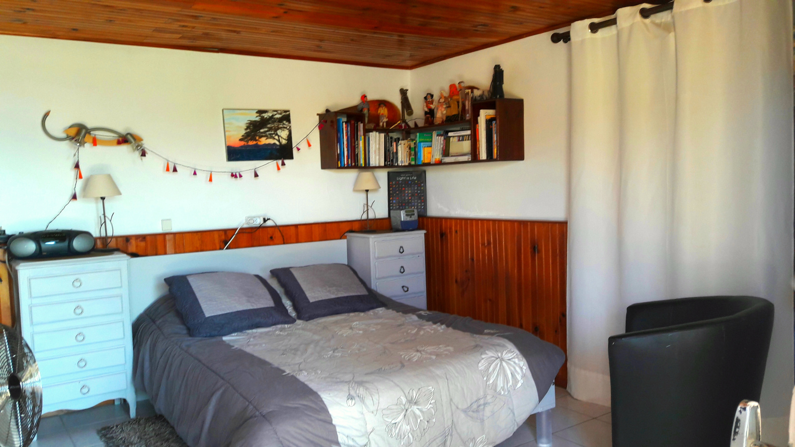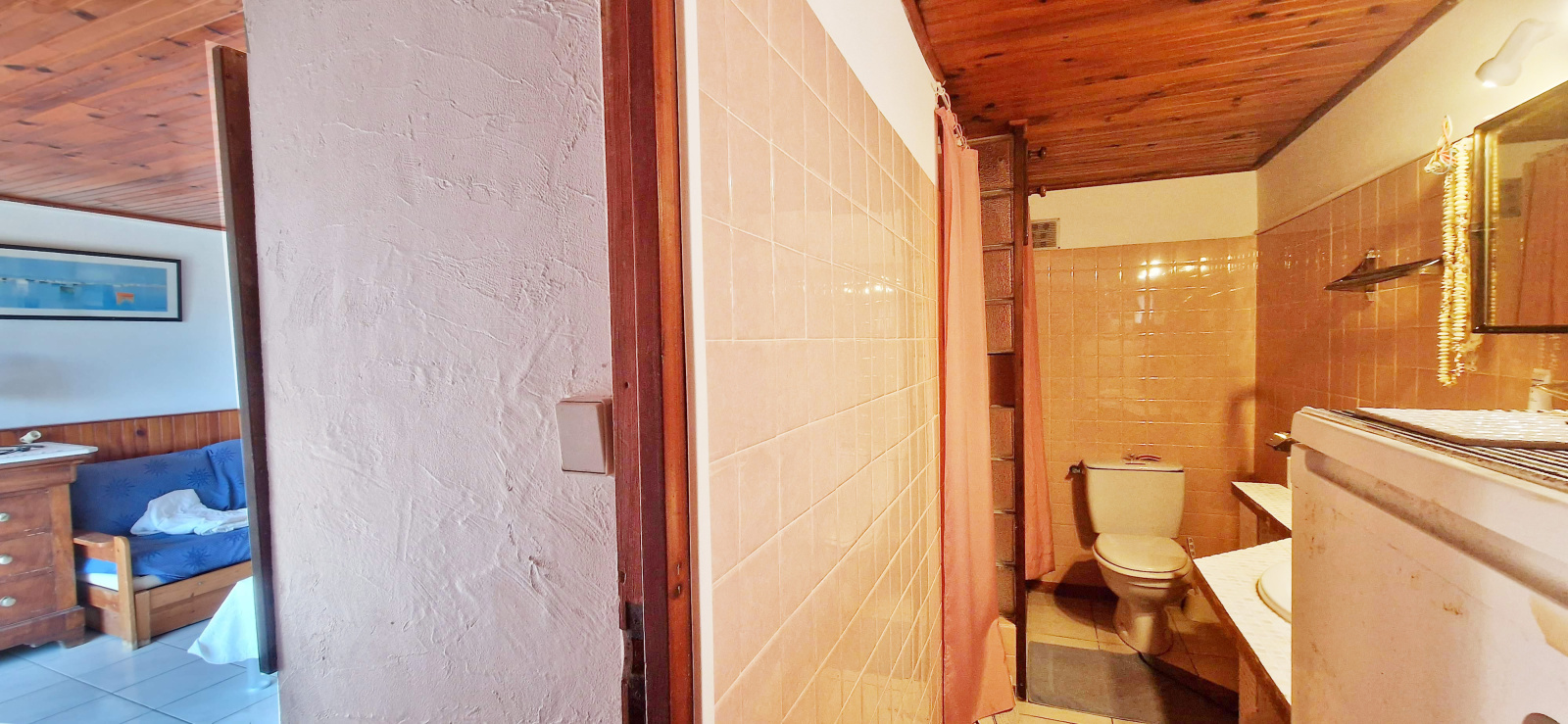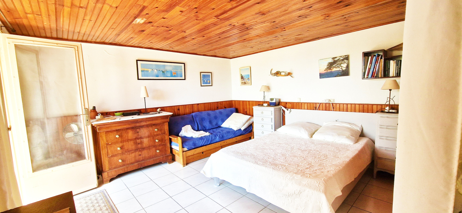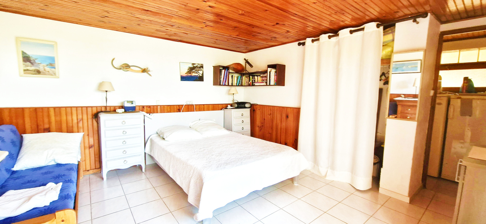 Une seconde chambre avec sa salle d'eau ouvre sur cette terrasse. Celle-ci bénéficie également d'une très belle vue mer. L'exposition sud-ouest de la maison permet un ensoleillement optimal en toute saison.
