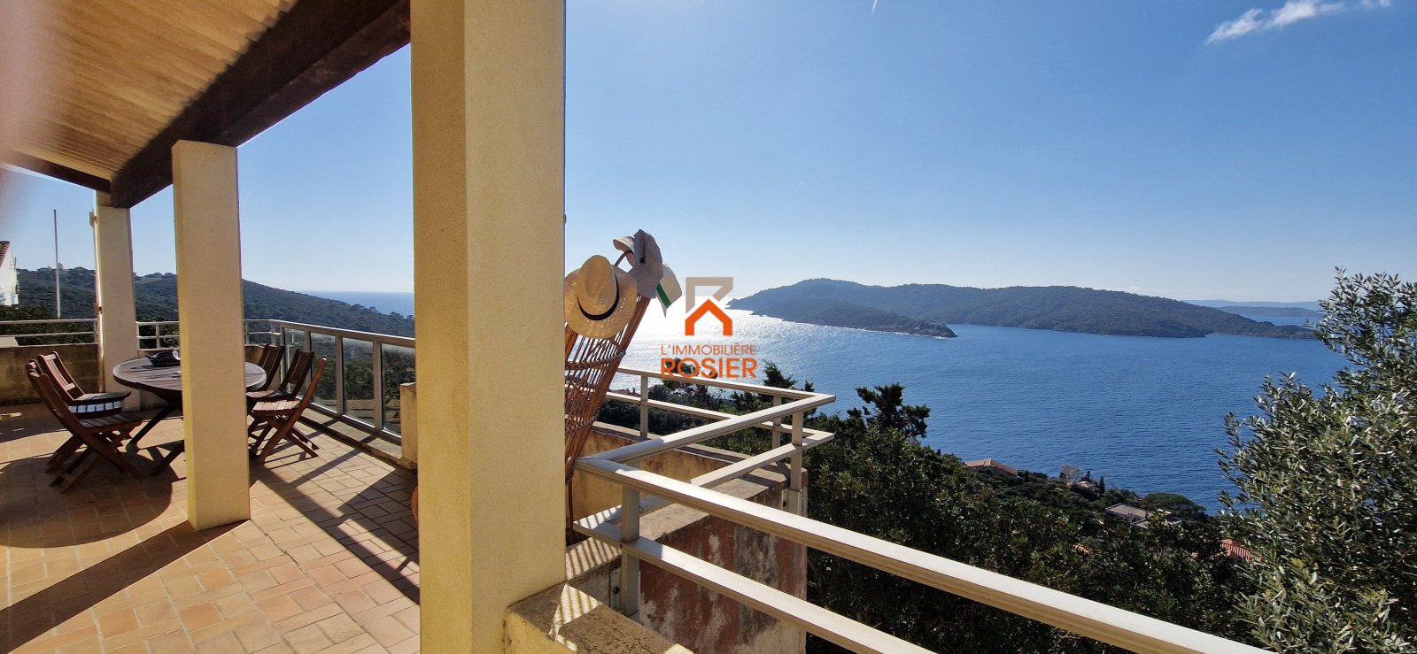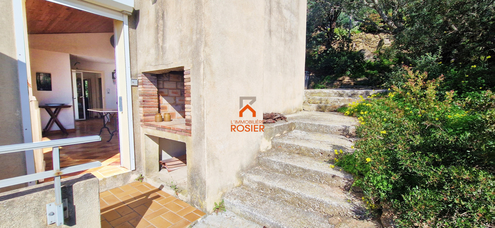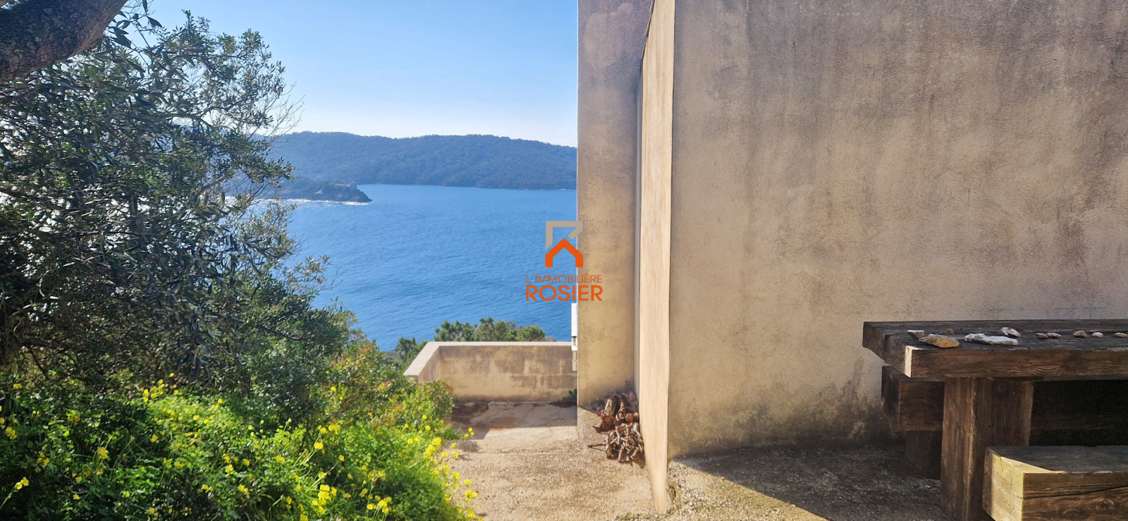 La maison est exposée à l’ouest, face au coucher de soleil en toute saison. Le maquis méditerranéen, avec ses oliviers sauvages, ses pistachiers, ses fougères arborescentes, ses arbousiers, cistes, myrtes et romarins agrémentent le jardin de plus de 1000 m² . La vue mer est très belle depuis l'ensemble du terrain