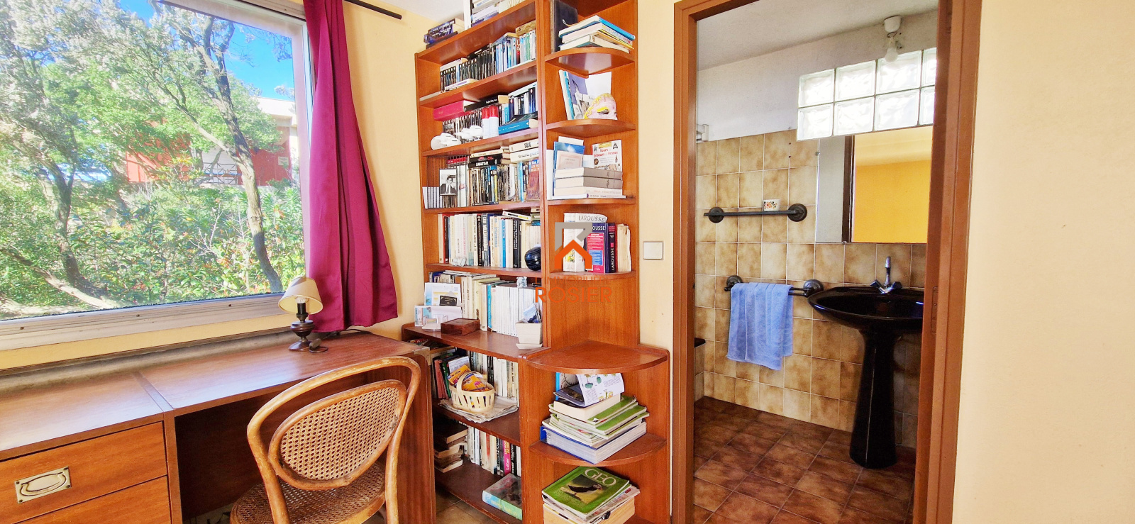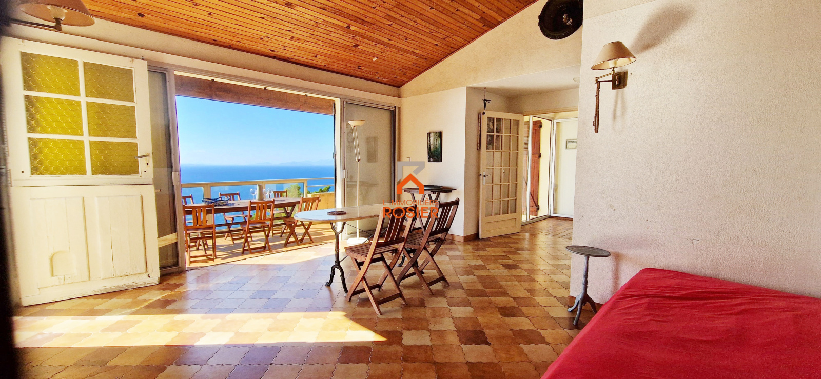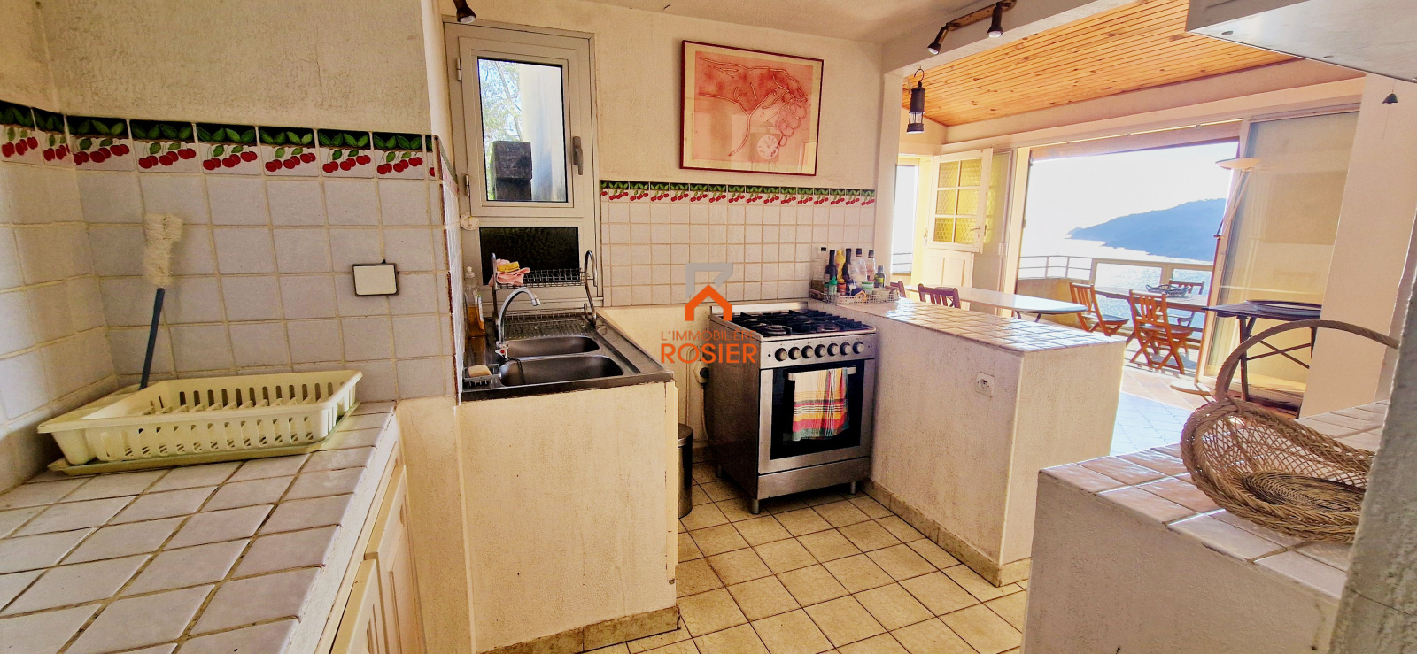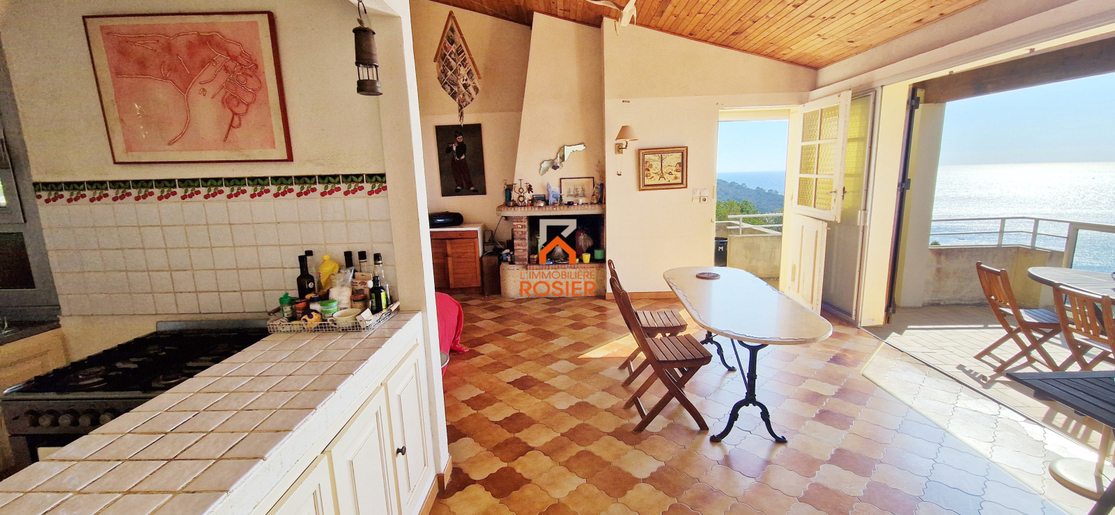 La maison est exposée à l’ouest, face au coucher de soleil en toute saison. Le maquis méditerranéen, avec ses oliviers sauvages, ses pistachiers, ses fougères arborescentes, ses arbousiers, cistes, myrtes et romarins agrémentent le jardin de plus de 1000 m² . La vue mer est très belle depuis l'ensemble du terrain