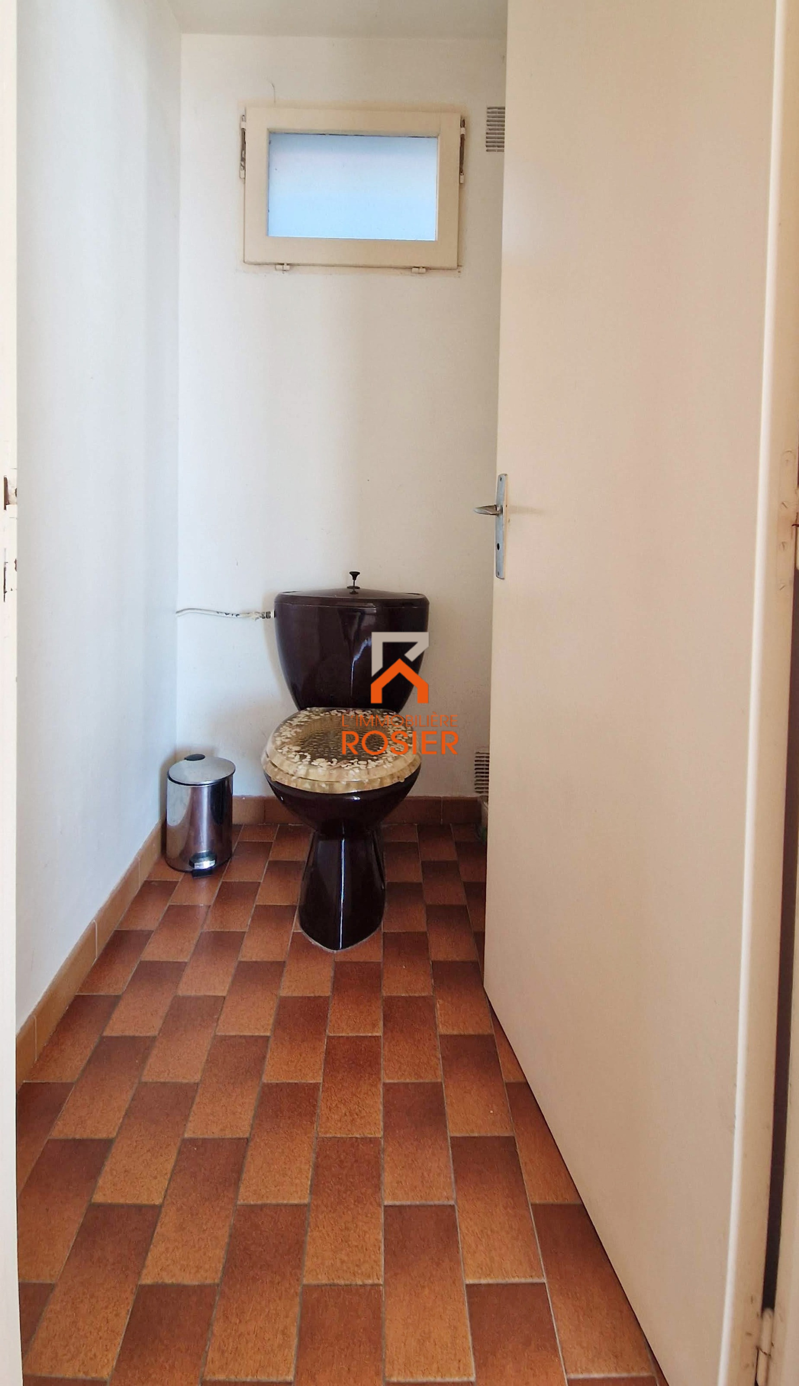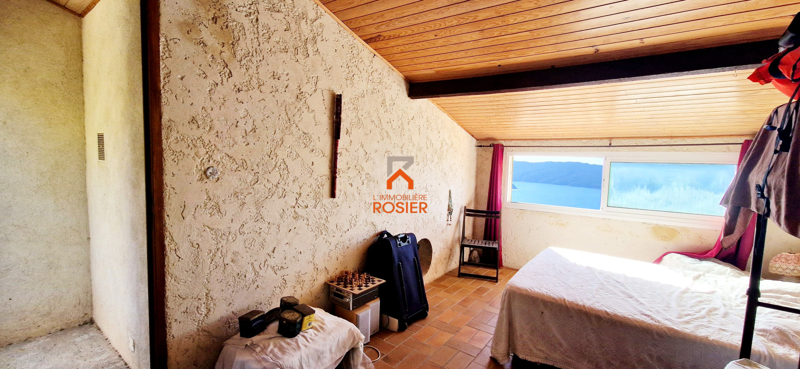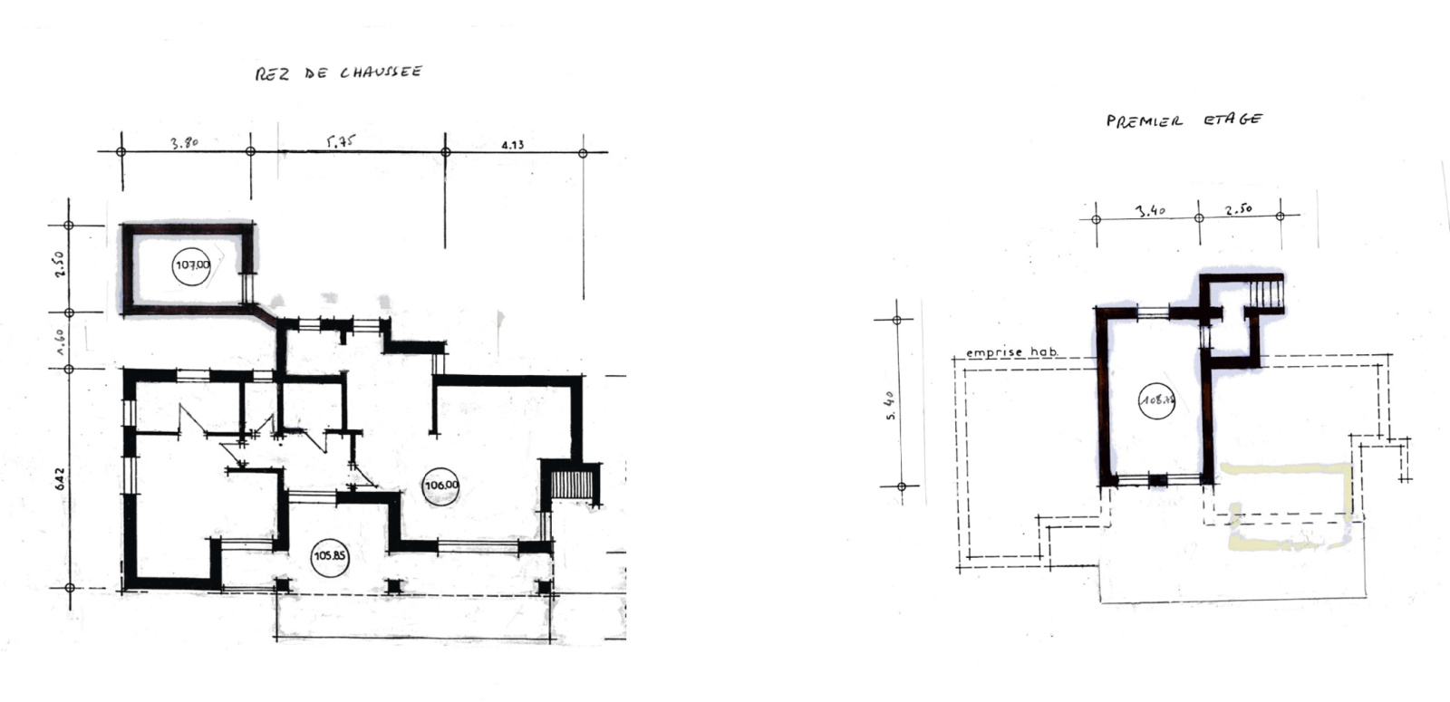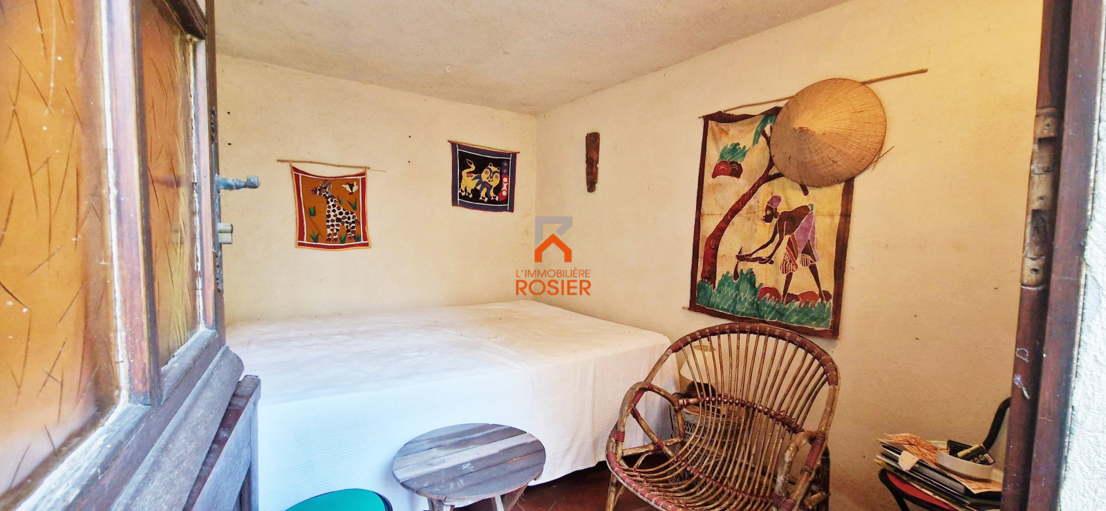 Sur la droite un petite pièce indépendante, accessible depuis l’extérieur est aménagée en chambrette. Au centre, un escalier permet d’accéder à la chambre du niveau supérieur. A gauche, quelques marches mènent au niveau principal.
