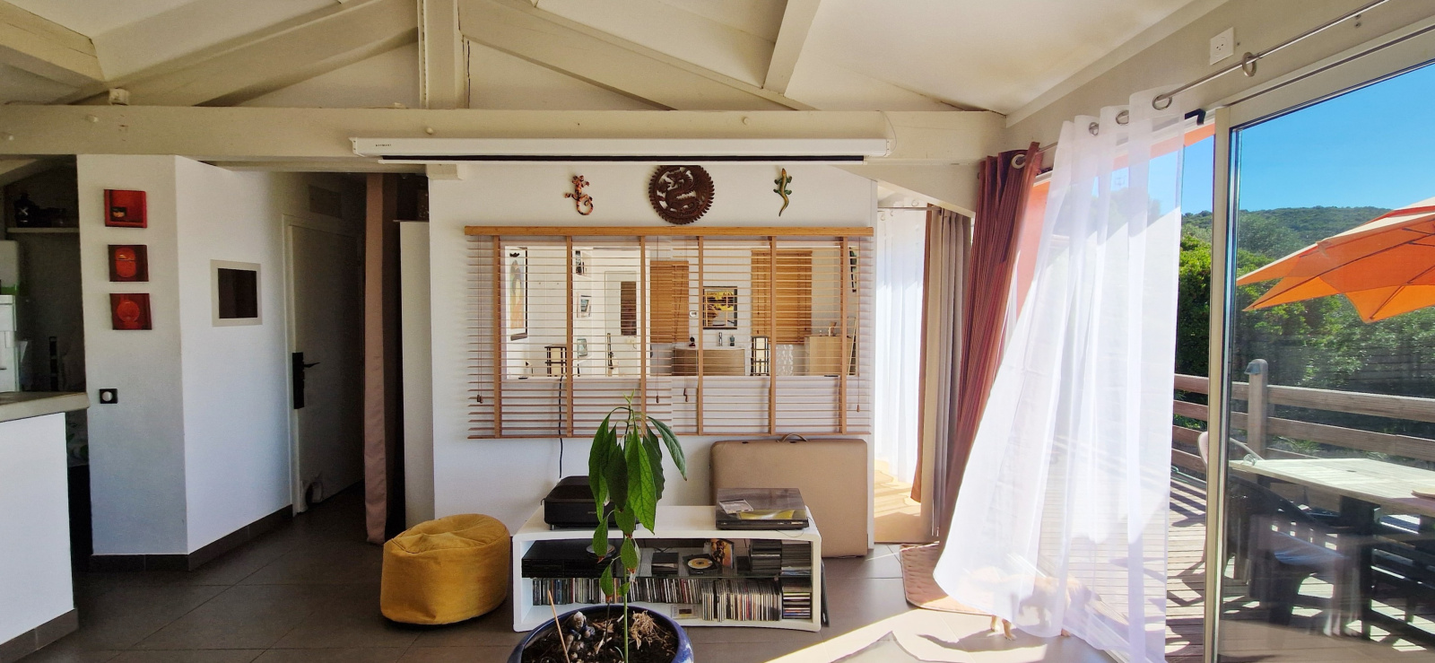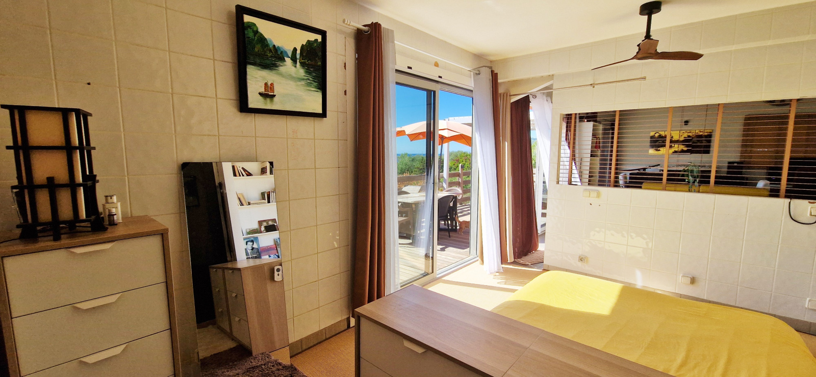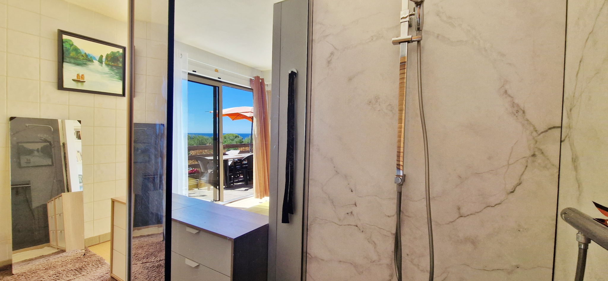 Le salon et la chambre ouvrent sur une belle terrasse exposée sud-est avec belle vue sur la mer et la nature, idéale pour profiter de chaque saison