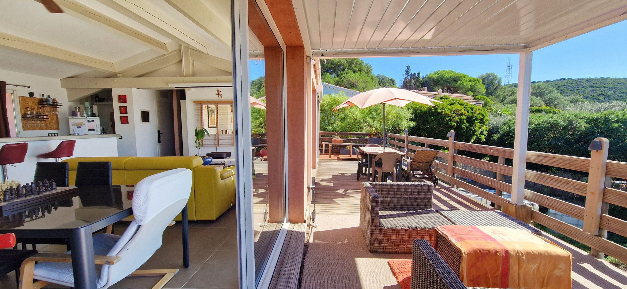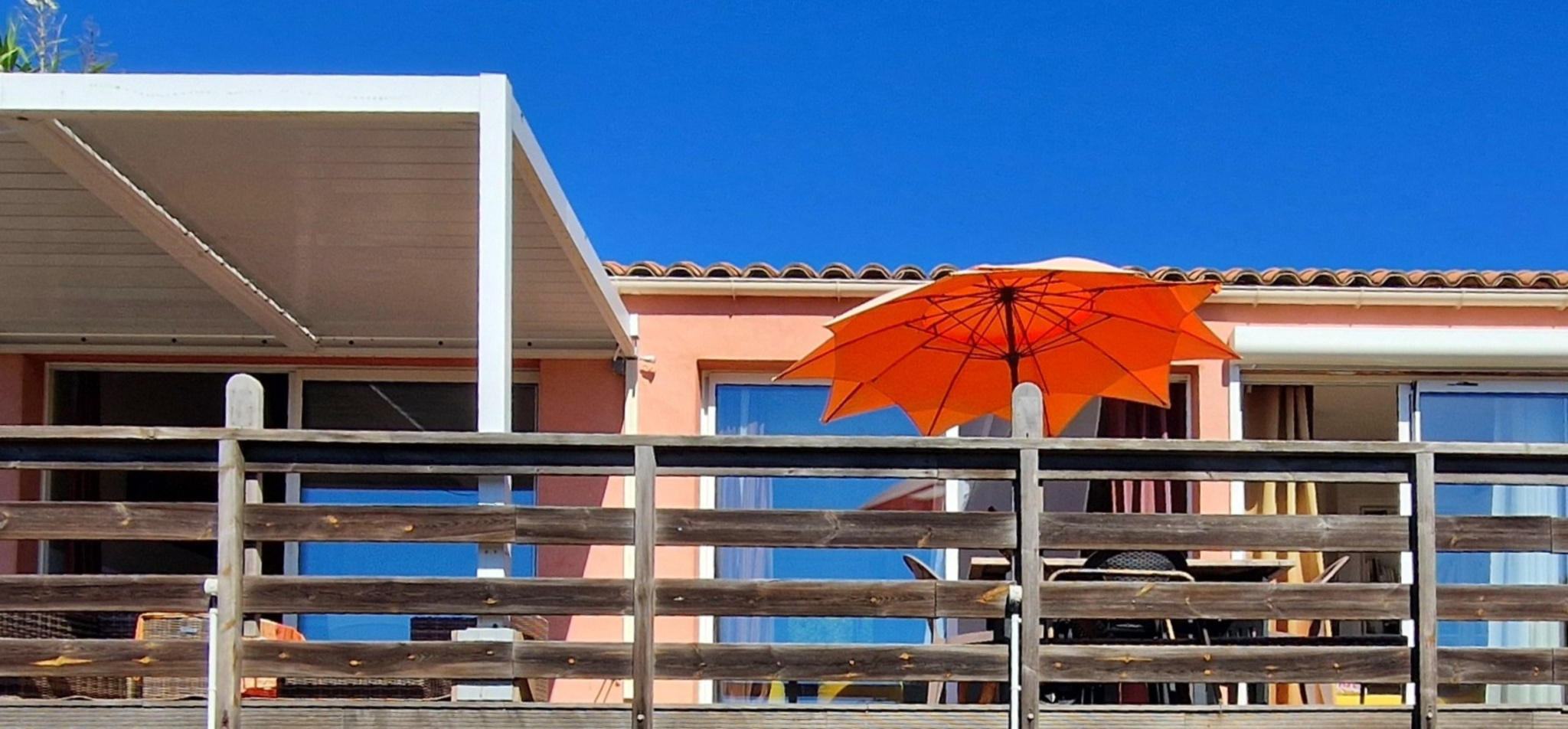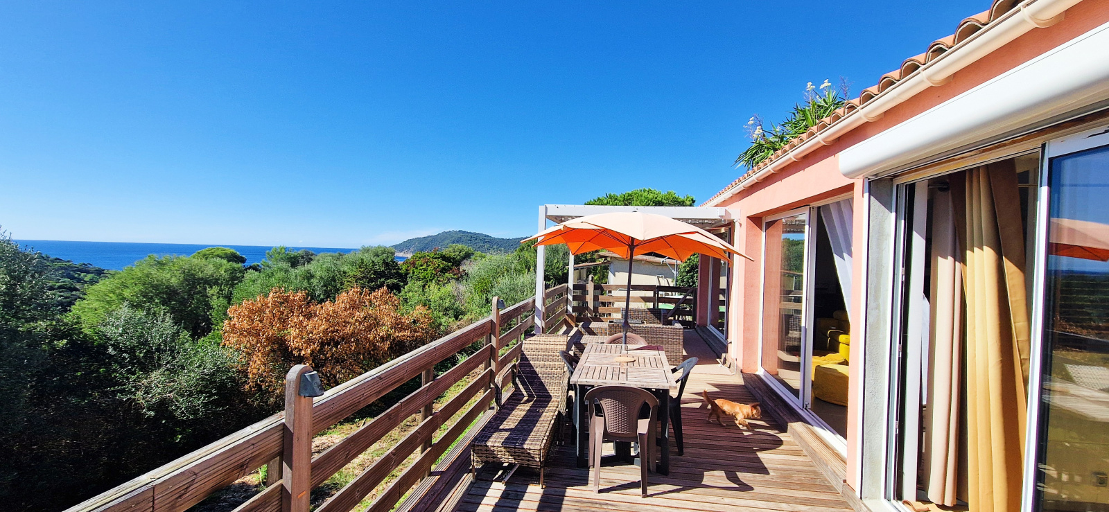 Le salon et la chambre ouvrent sur une belle terrasse exposée sud-est avec belle vue sur la mer et la nature, idéale pour profiter de chaque saison