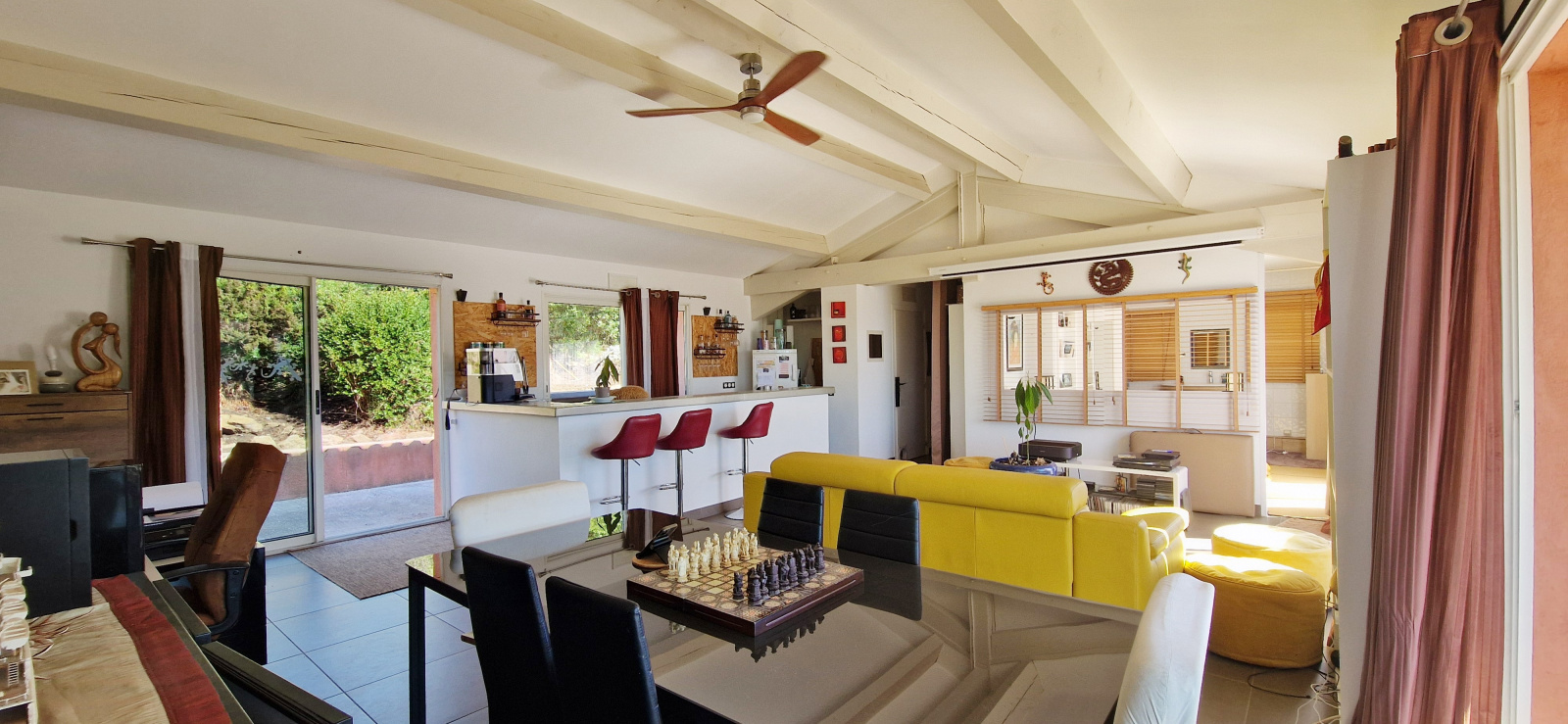 Avec son vaste salon lumineux s'ouvrant sur une large terrasse, cette propriété offre un cadre de vie idyllique.