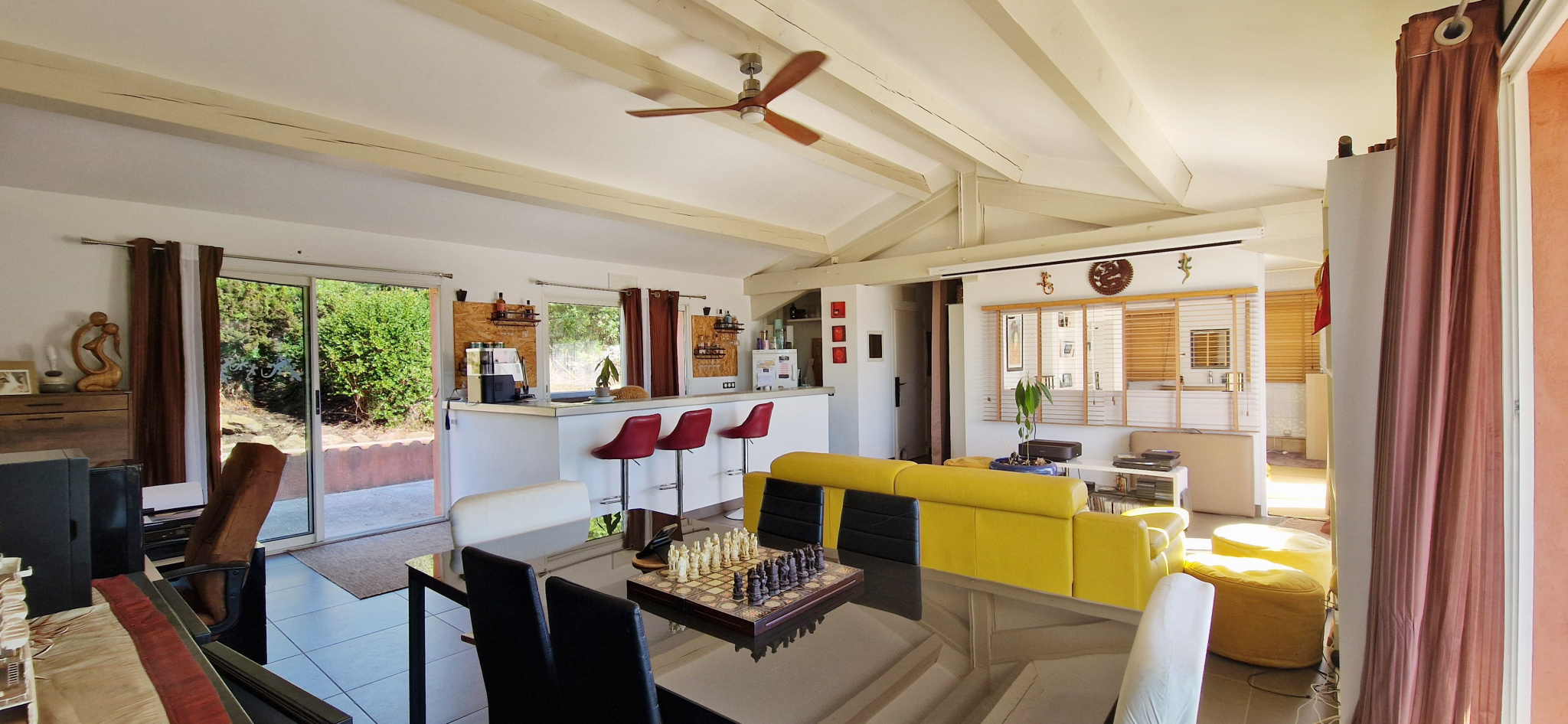 - d’un grand salon / salle à manger avec cuisine ouverte