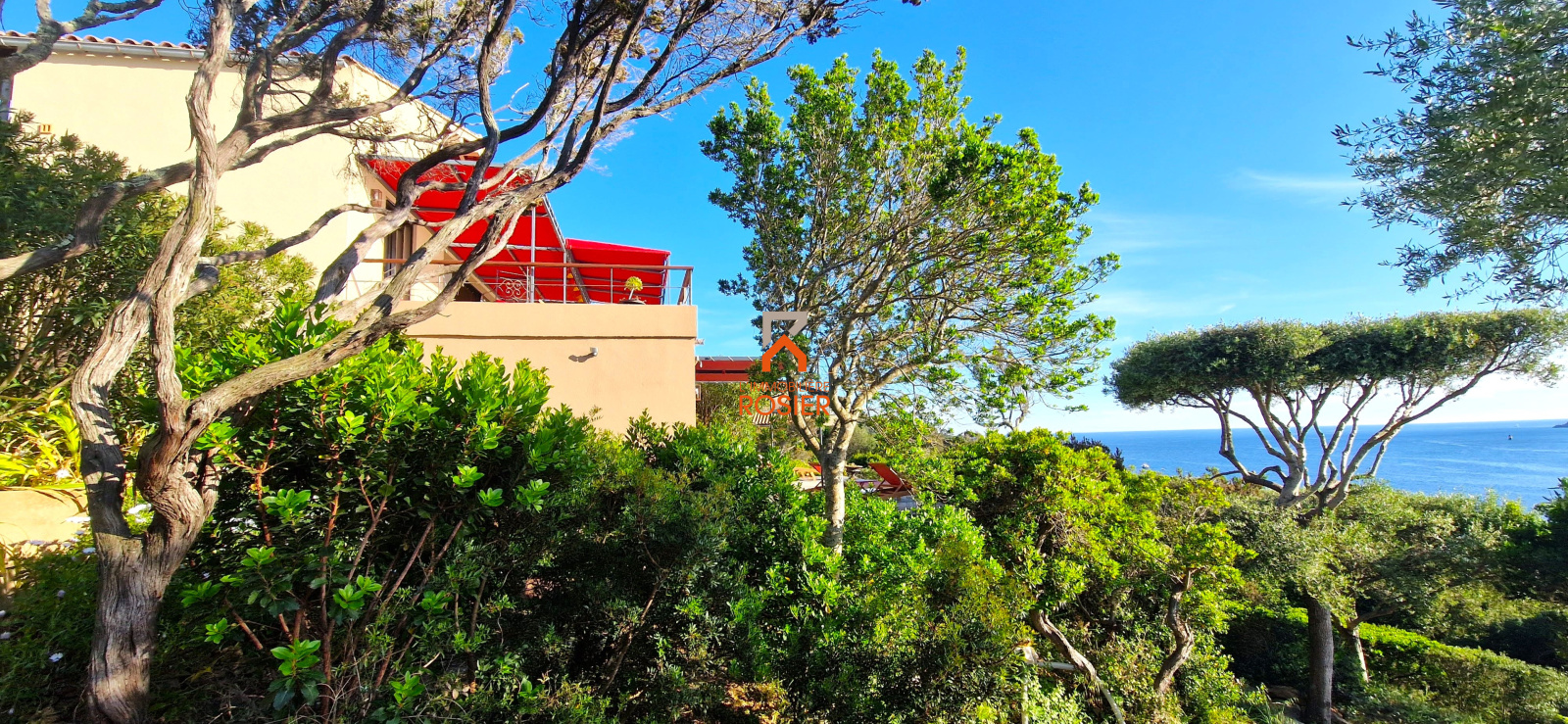 Son jardin d'environ 1 600 m², orienté à l'ouest et en pente douce vers la mer est paysagé avec des 'essences du maquis méditerranéen : oliviers sauvages, pistachiers lentisques, arbousiers, fougères arborescentes, filaires. Un chemin côtier permet d'accéder en moins d'une minute à pied à des coins de baignade.
