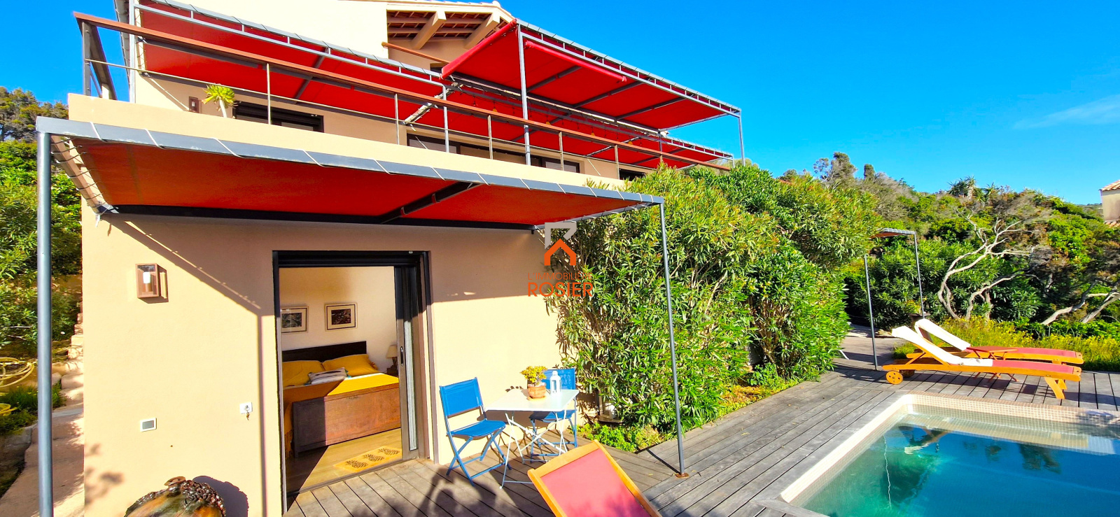 Ces deux chambres ont chacune leur terrasse et une petite piscine commune.